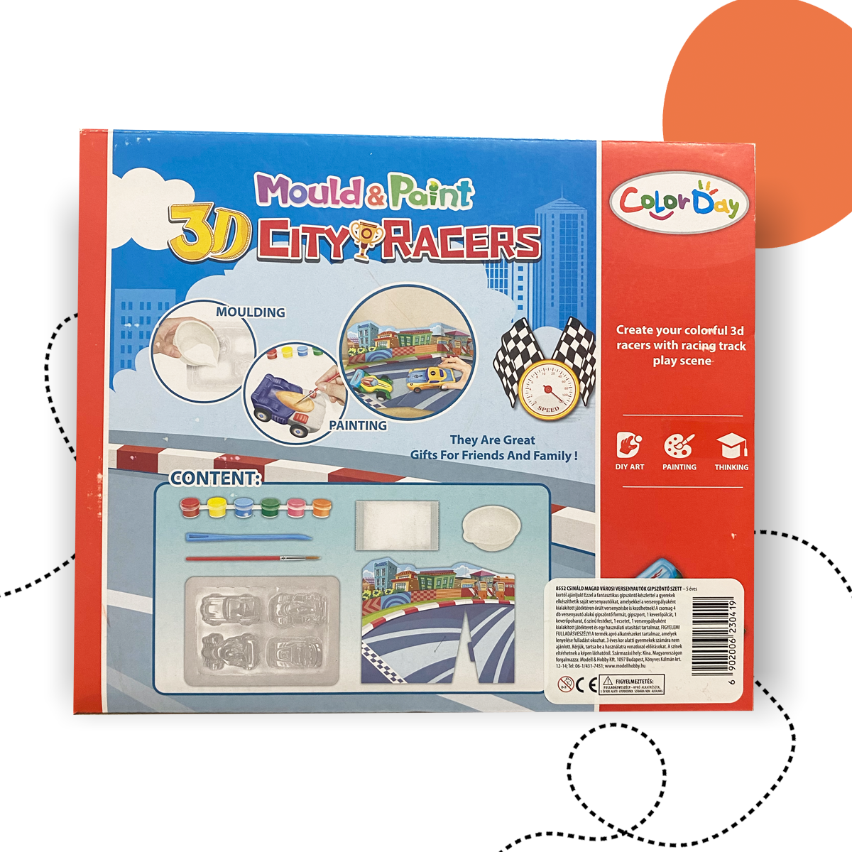 Ez a szett pont az a fajta kreatív móka, amibe könnyű belefeledkezni: keversz, öntesz, vársz egy kicsit, aztán jöhet a festés! A gyerekek saját városi versenyautókat készíthetnek gipszből, amelyeket a száradás után kedvük szerint színezhetnek ki – minden darab egyedi lesz, pont, mint az alkotója. Tökéletes választás otthoni alkotós délutánokra, ajándéknak vagy közös családi programhoz – mert itt nem csak játszani lehet, hanem alkotni is.