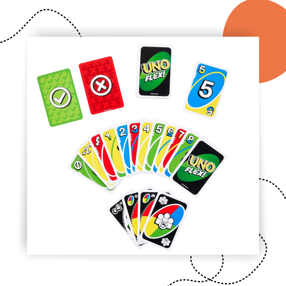 Ez az UNO Flex pakli nem csak klasszikus kártyajáték, hanem teljes kihívás: minden kör számít, és a Flex kártyák mindent felboríthatnak. A +2, Skip, Reverse és Wild lapok mellett most már a Flex kártyákkal is játszhatsz, hogy teljesen váratlan fordulatokat hozz a játékba.